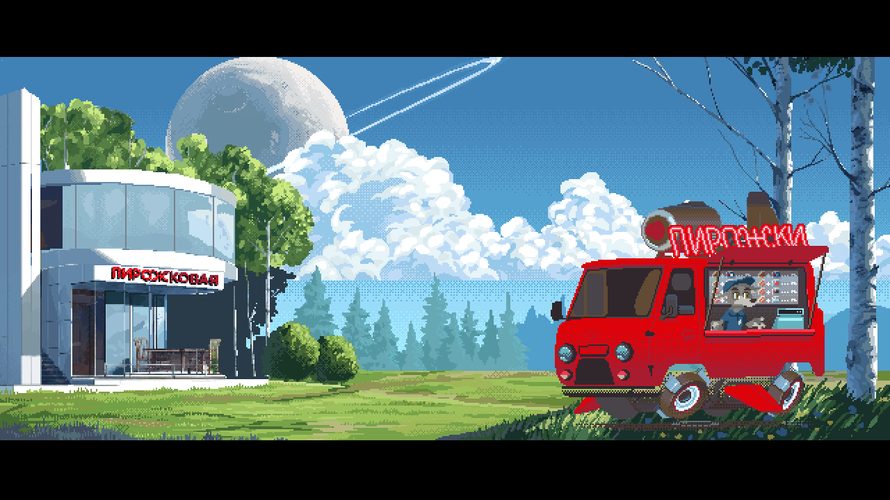 Here, all the graphics are made in a limited palette of only 8 colors. This helps to create a retro effect and a certain visual style.